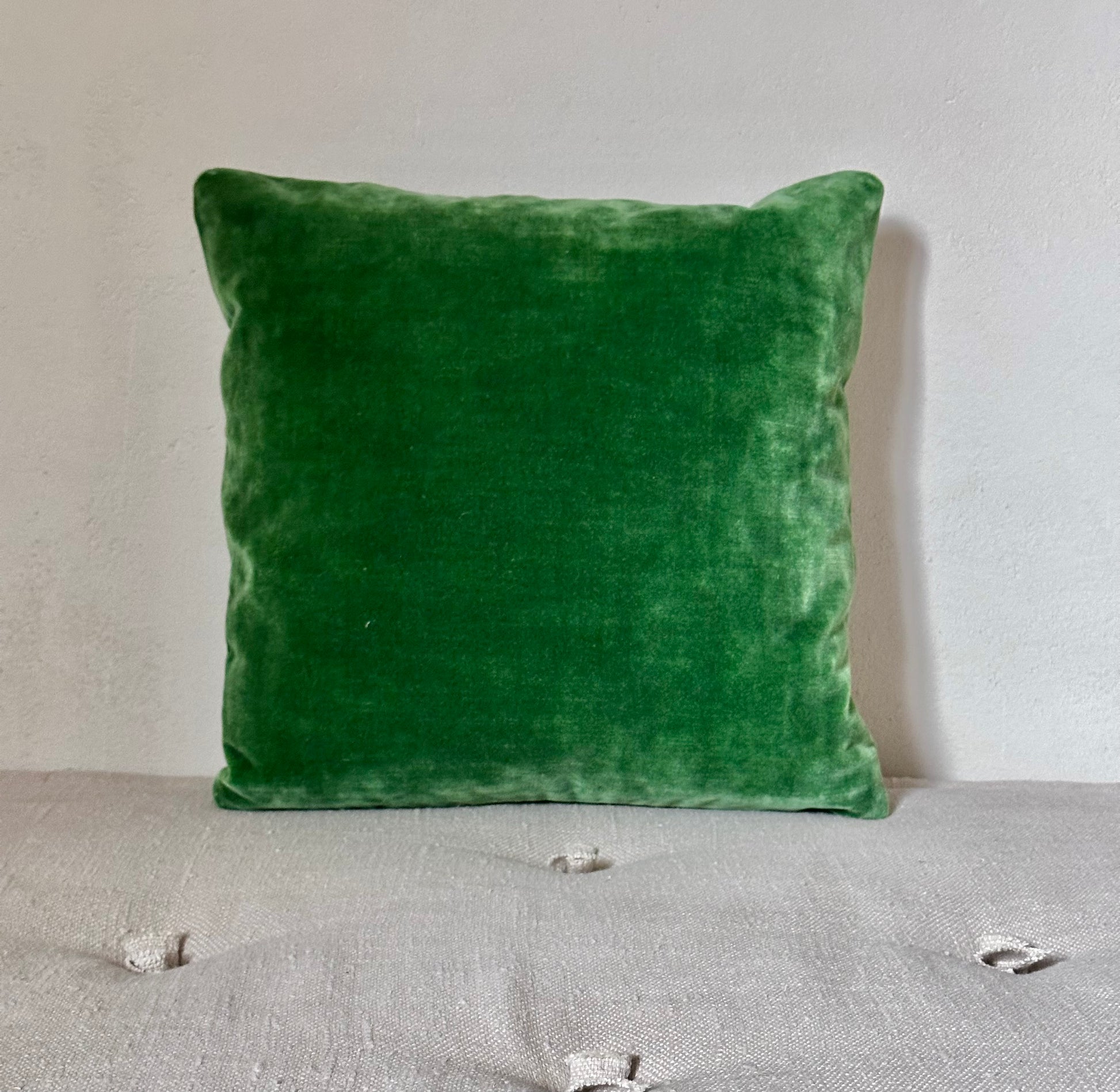 Small square cushion in soft emerald green velvet