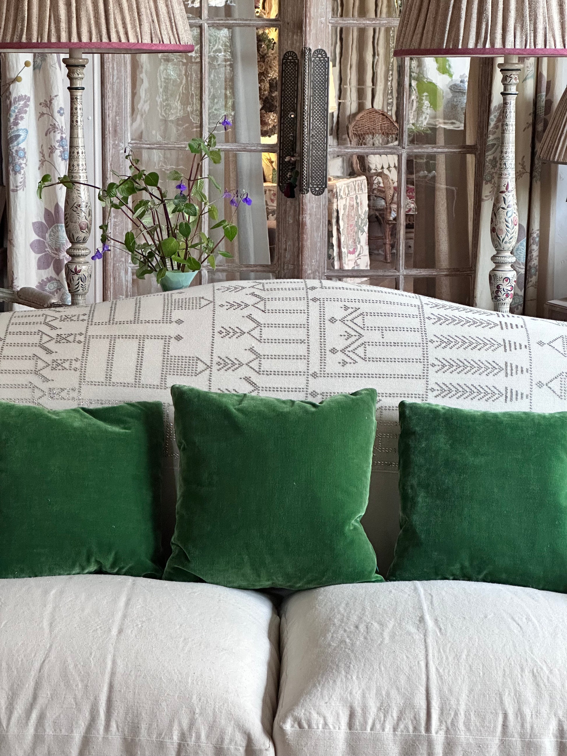 Emerald green velvet cushions